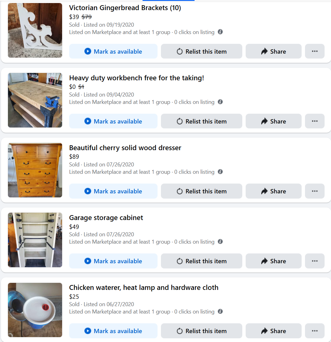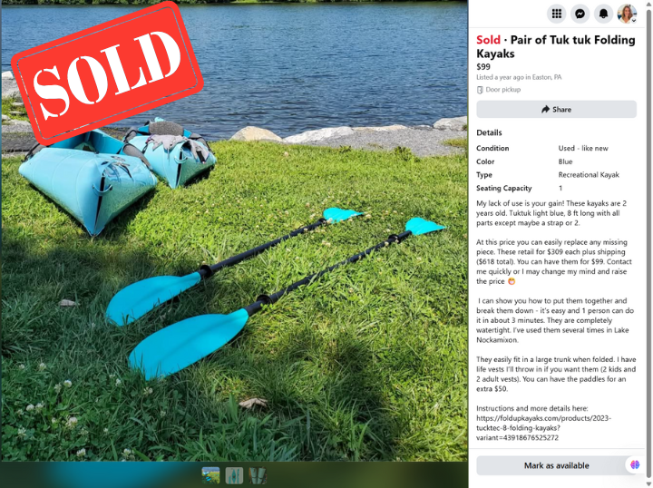 I've sold dozens of items over the years across multiple platforms. A couple of kayaks taking up space in my shed? I sold them in hours for $99. I could have charged more but I just wanted them gone.